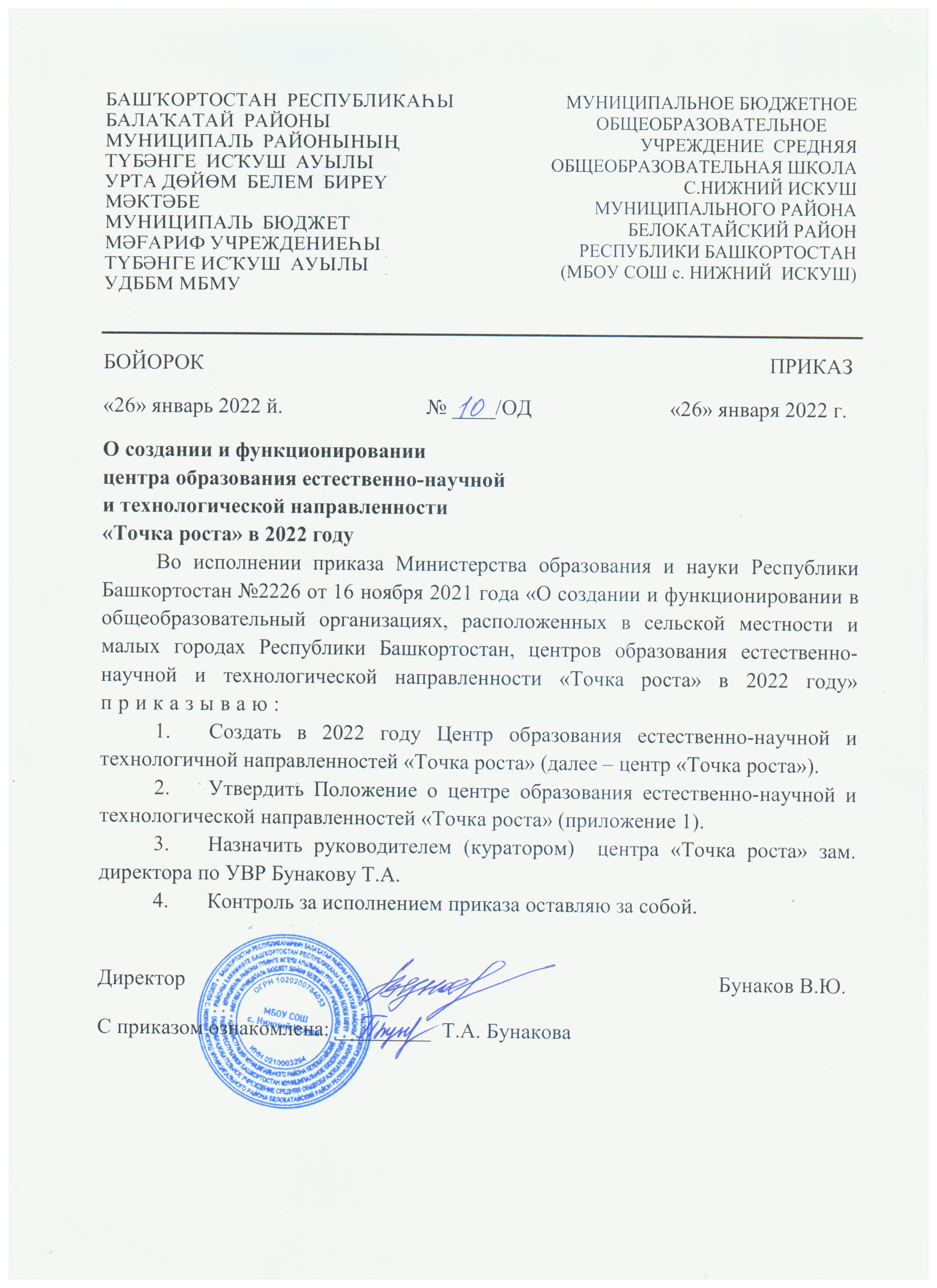Руководителем центра «Точки Роста» назначена Бунакова Татьяна Александровна.